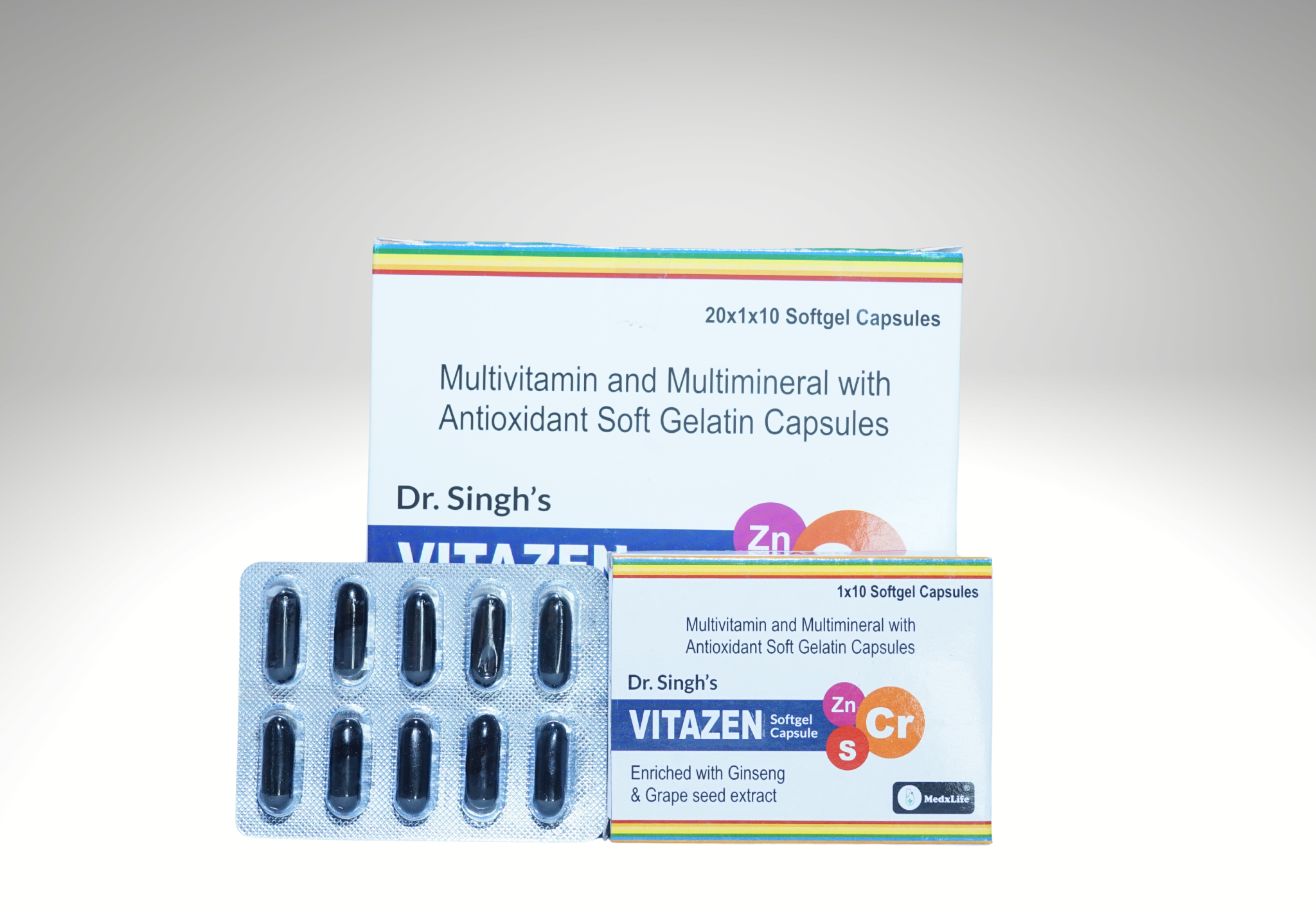 Dr. Singh’s Vitazen Capsule is a premium daily health supplement formulated with a powerful blend of Ginseng, Grape Seed Extract, Vitamin B Complex, Vitamins D & E, Vitamin C, Calcium, Zinc, Magnesium, Selenium, Chromium, Manganese, and other essential minerals and antioxidants.
